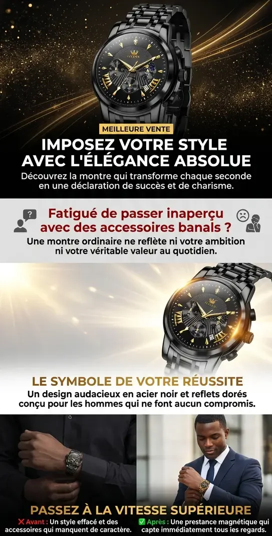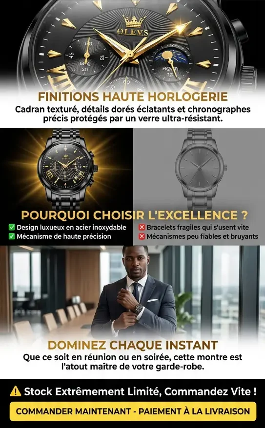Montre OLEVS™ Impérial Black & Gold – Chronographe de Luxe